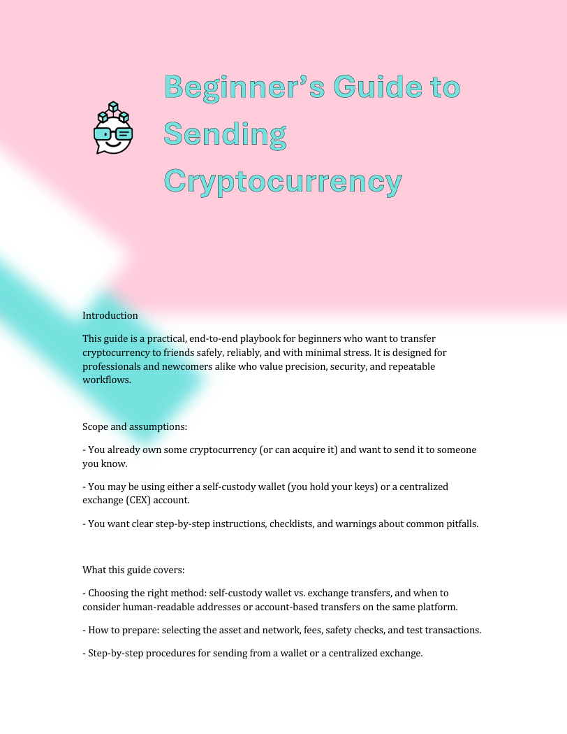 This beginner-friendly guide walks you step by step through how to send cryptocurrency safely and confidently, even if you’ve never used crypto before. It breaks down wallets, networks, and common mistakes in plain English, with practical examples you can follow in real time. Designed as a clear reference you can come back to anytime, it helps you avoid costly errors and use crypto with confidence.